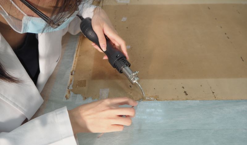 紙質藝術品可說是國美館館藏數量相當可觀的品類,然而也因為其屬於有機類材質,所受到的劣化損害可能性也相對提高,例如紙力遞減、紙質破損、媒材變色等等,因此經驗豐富的修復師唯有透過瞭解藝術品的材質、媒材、格式以及過去的保存與展示方式等,始能嫻熟地運用其藝術知識與科學技術,來綜合考慮環境、光線、溫度、病蟲害、空氣品質等因素對藏品的影響並進行完善的修復工作。