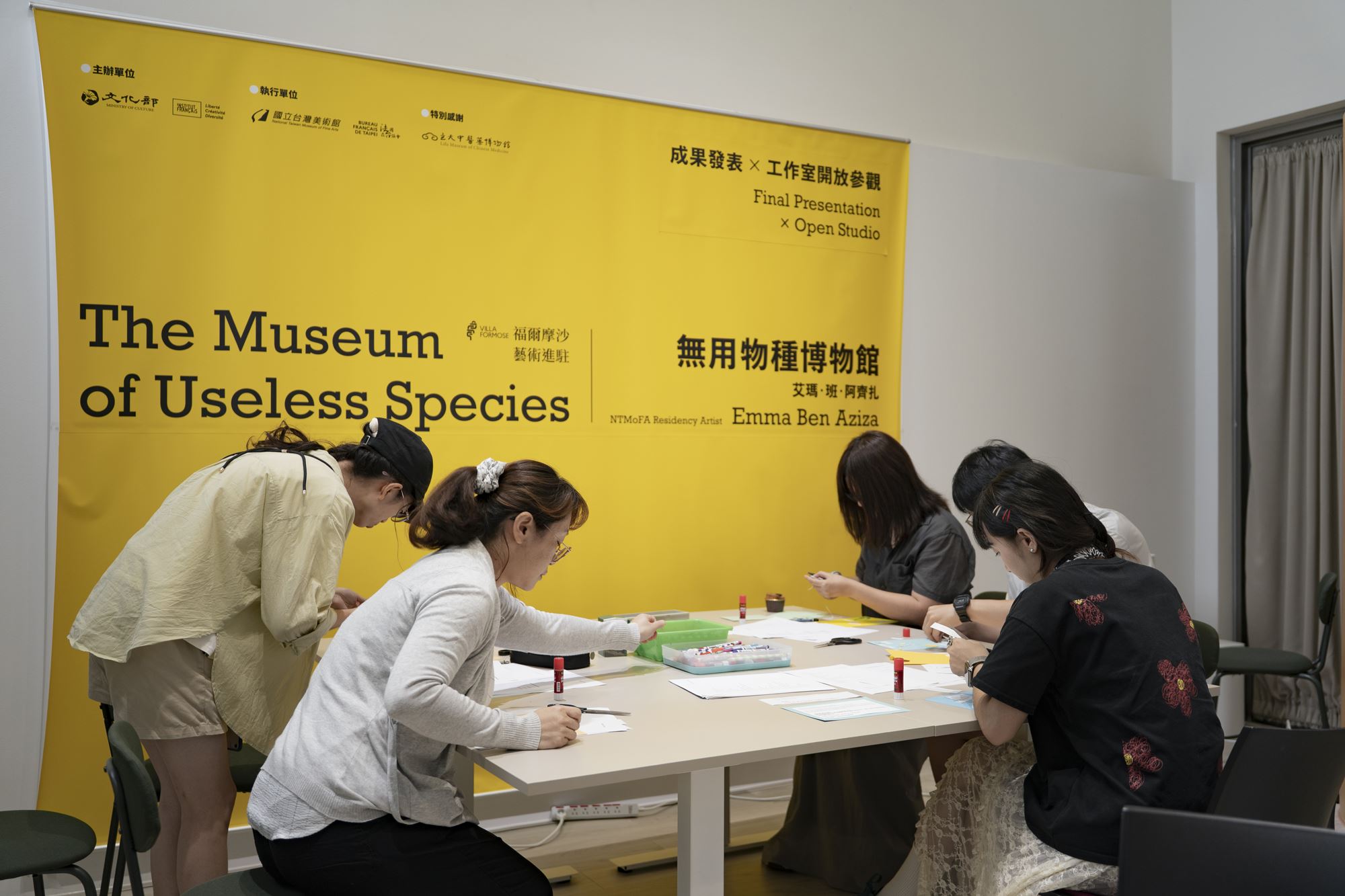 On August 30, the National Taiwan Museum of Fine Arts (NTMoFA) successfully hosted the final presentation of this year’s first artist-in-residence, Emma Ben Aziza. During the event, the artist shared her experiences from two workshops conducted during the residency and showcased the collective creation developed with participants—The Museum of Useless Species model and an accompanying educational booklet. The audience was also invited to take part in an improvised workshop with the artist, creating together in a lively and engaging atmosphere.